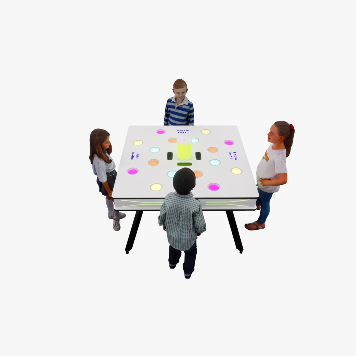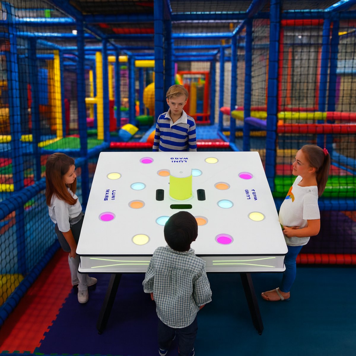 Lumi Wars is a 4-player interactive reaction game that brings together speed, focus, and competition in an exciting, technology-driven format.At the center of the game table, a colorful LED light bar becomes the core of each challenge. During gameplay, the bar’s lights flash in sequence until one color remains lit. Players must quickly react and tap the matching illuminated checkpoint in front of them before their opponents do.